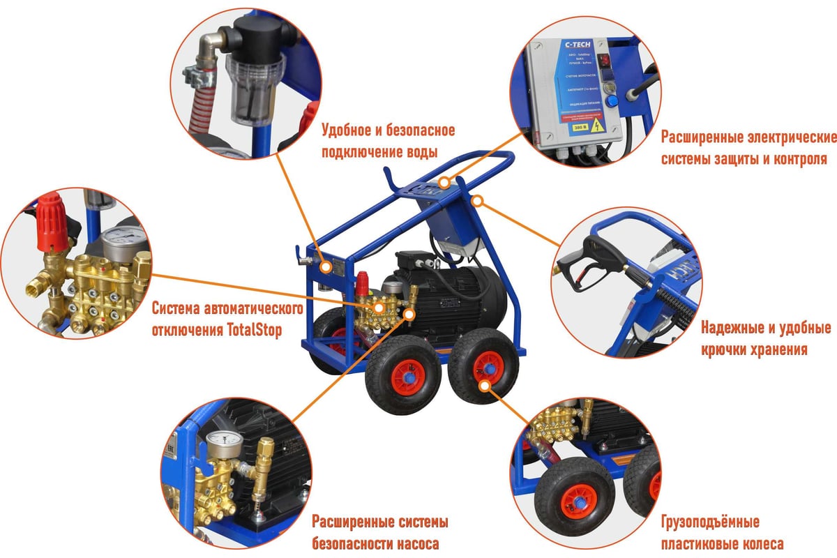 Мойка C-TECH Next NTR2020 оснащена системой автоматического отключения, и датчиком контроля температуры, что позволяет поддерживать оптимальные условия для работы с различными типами поверхностей.