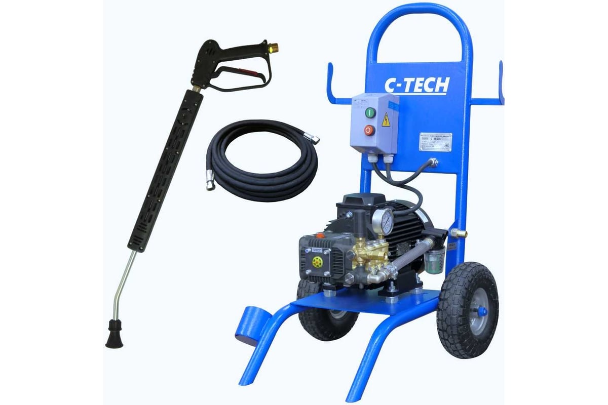 Мойка высокого давления C-TECH АВД (200 бар, 15 л/мин, 5.5 кВт) ByPass + комплект ручной мойки NTR2015ET1E1BP2FMT-10-SPG6 предназначена для профессионального применения.