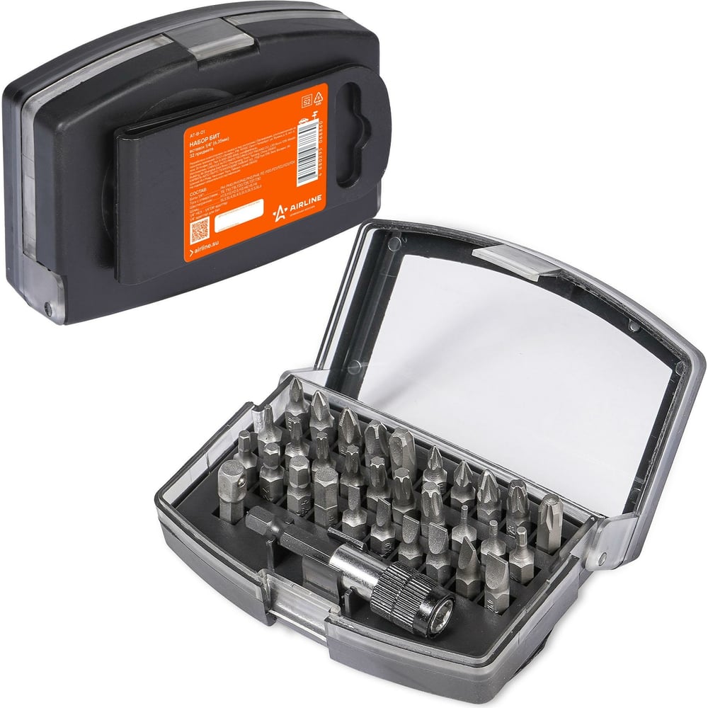 Набор бит вставок 1/4" (6.35мм) 32 предмета AIRLINE AT-B-01 Бита вставка изготовлена из особо прочной специальной стали S2 методом горячей ковки, что придаёт им высокую прочность и долговечность. Твёрдость: 58-62 HRC. Артикул: AT-B-01 OEM номера: 626940, DBT31B, OMT31S Состав: металл/пластик Размер: Биты 1/4" PH: PH0,PH1,PH2,PH3,PH4 PZ: PZ0,PZ1,PZ2,PZ3,PZ4 Timeproof Torx: T8, T10,T15,T20,T25,T27,T30 Шестигранник: H1.5,H2,H2.5,H3,H4,H5,H6 Шлиц: SL3,SL4,SL4.5,SL5,SL5.5,SL6 1/4" HEX - 1/4"DR адаптер 1/4" адаптер для бит