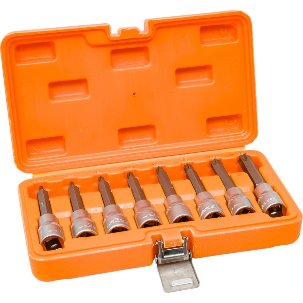 Набор головок 1/2" DR со вставками TORX T20-T60 длиной 100мм 8 предметов в кейсе AIRLINE AT-BS-32 Головки торцевые изготовлены из высококачественной хром-ванадиевой стали. Металлические части изготовлены методом горячей ковки, что придаёт им высокую прочность и долговечность. Финишное прочное хромированное покрытие защищает инструмент от воздействия коррозии, делает его более износостойким и легко очищается от загрязнений. Финишная обработка двух типов (частичная полировка) головок придаёт им отличный внешний вид. Продуманный профиль рабочей части торцевых головок смещает пятно контакта с ребра грани на её поверхность, что предотвращает повреждение болтов и гаек даже при самых высоких нагрузках. Артикул: AT-BS-32 OEM номера: 624298, 39600, 912910 Состав: металл/пластик Размер: Головка 1/2"DR (по 1 шт.): T20,T25,T30,T40,T45,T50,T55,T60 L=100мм