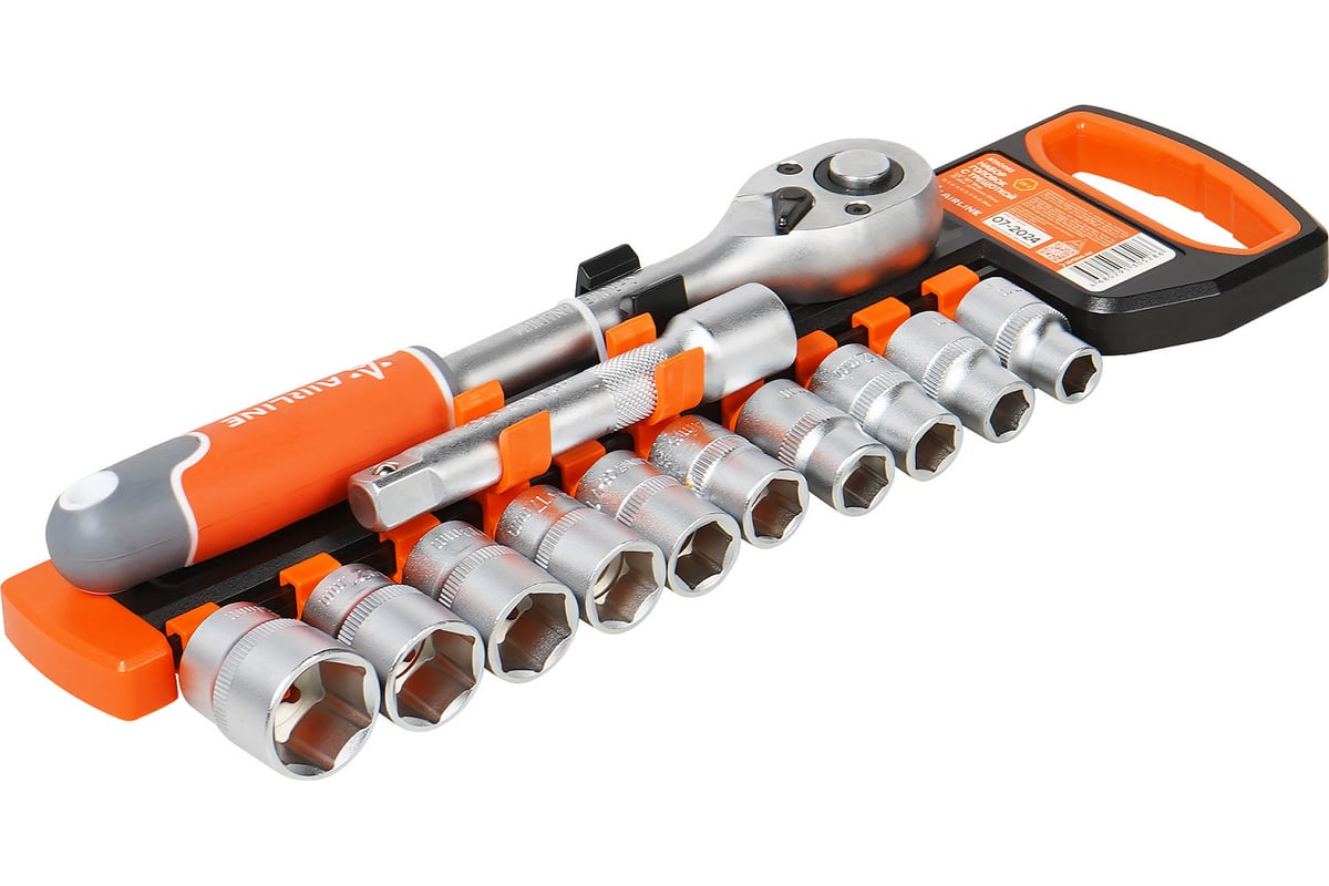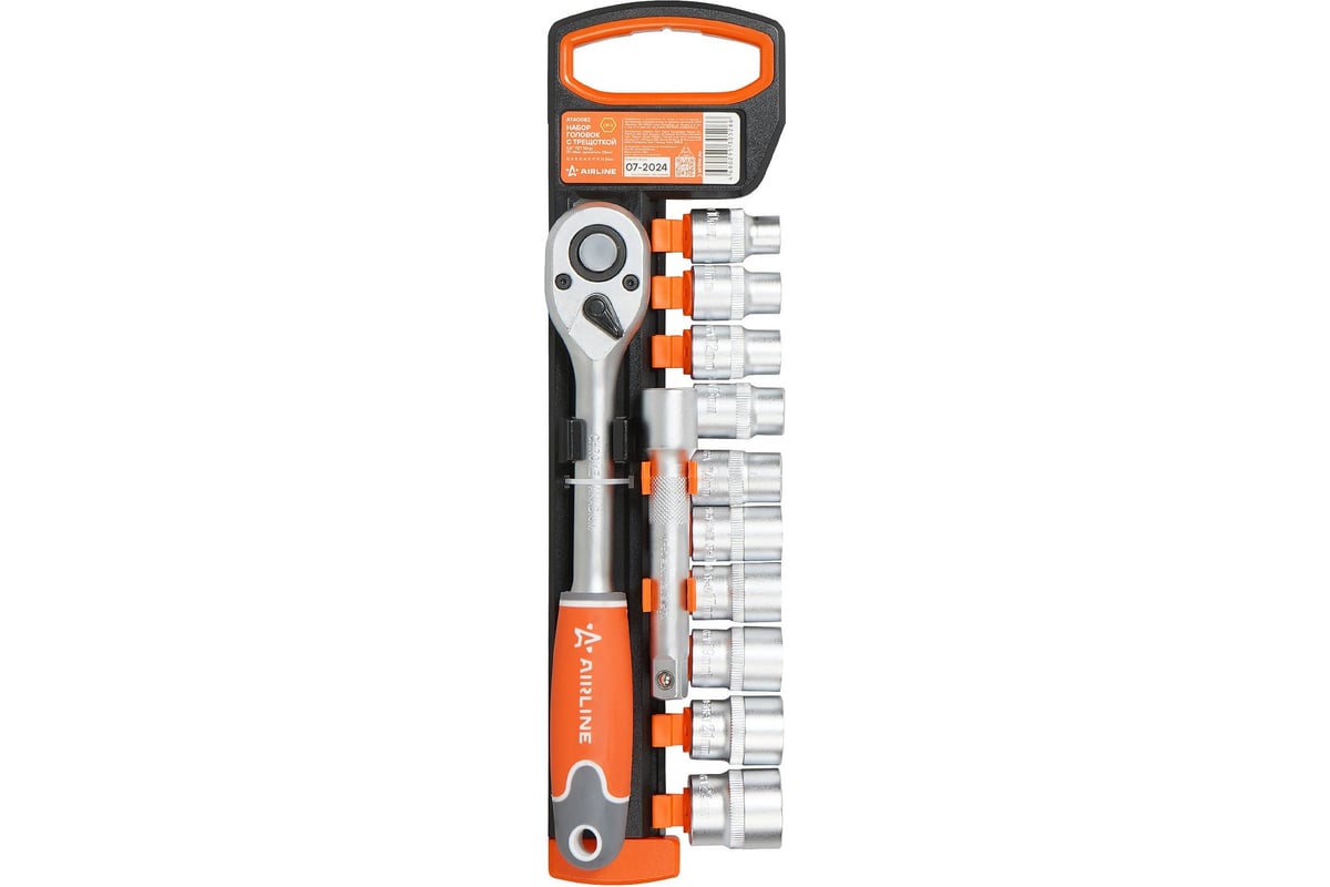 Набор головок с трещоткой 1/2" 72Т 12пр. (10-24мм, удлинитель 125мм) AIRLINE ATAO082