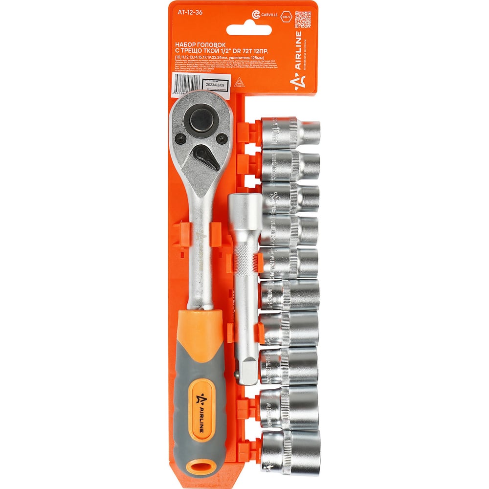 Набор головок с трещоткой Airline 1/2" DR 72Т 12пр. AT-12-36 подходит как для использования на бытовом уровне, так и для применения в профессиональной сфере. Инструменты изготовлены из высококачественной хромованадиевой стали. Металлические части изготовлены методом горячей ковки, что придаёт им высокую прочность и долговечность. Финишное хромированное покрытие защищает инструмент от воздействия коррозии, делает его износостойким и легко очищается от загрязнений. Финишная обработка двух типов (частичная полировка) головок придаёт им привлекательный внешний вид. Продуманный профиль рабочей части торцевых головок смещает пятно контакта с ребра грани на её поверхность, что предотвращает повреждение болтов и гаек даже при самых высоких нагрузках. Эргономичный профиль рукояток приводов и воротков позволяет развивать большее усилие без риска повреждения кистей рук. Надёжный трещоточный механизм на 72 зуба значительно повышает производительность труда и снижает нагрузки на ладонь. Инструмент выполнен из качественной cтали CrV50BV30 твёрдостью 45-48 HRC. Материал отличается высокой прочностью и долговечность. Матовое хромирование с частичной полировкой обеспечивает защиту от коррозии и долговечность.