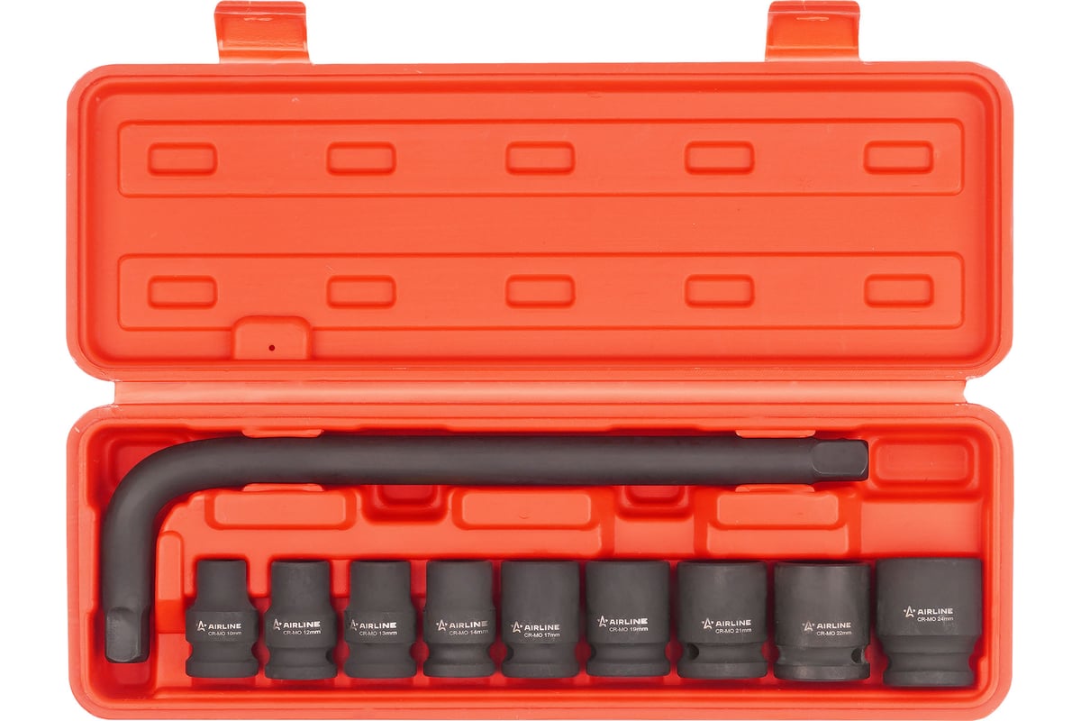 Набор ударных головок применяется для монтажа/демонтажа крепежных элементов с помощью пневматического гайковерта. Предназначен для профессионального использования на СТО. Головки выполнены из специальной хром-молибденовой стали, что придает им высокую прочность и устойчивость к ударным нагрузкам. Комплект поставляется в пластиковом кейсе.