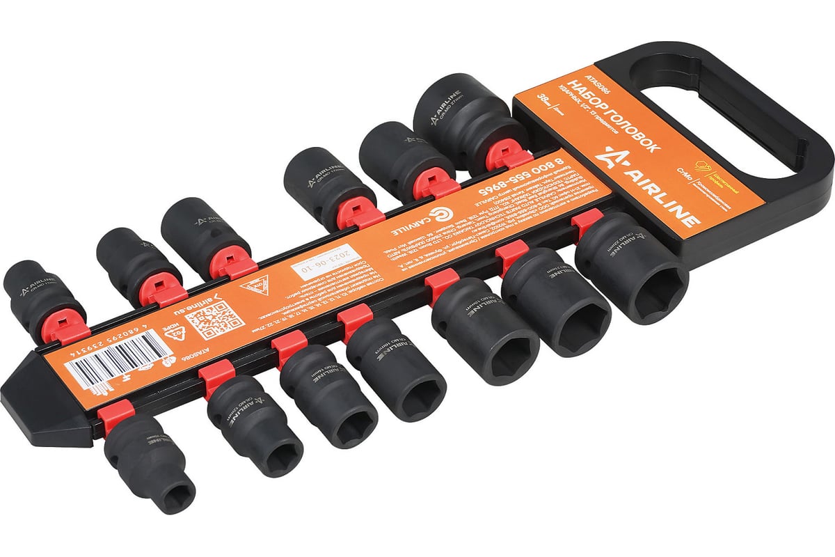 Набор головок ударных 1/2"DR, 38 мм, 13 предметов, 10-27 мм, пластиковый подвес Airline ATAS086