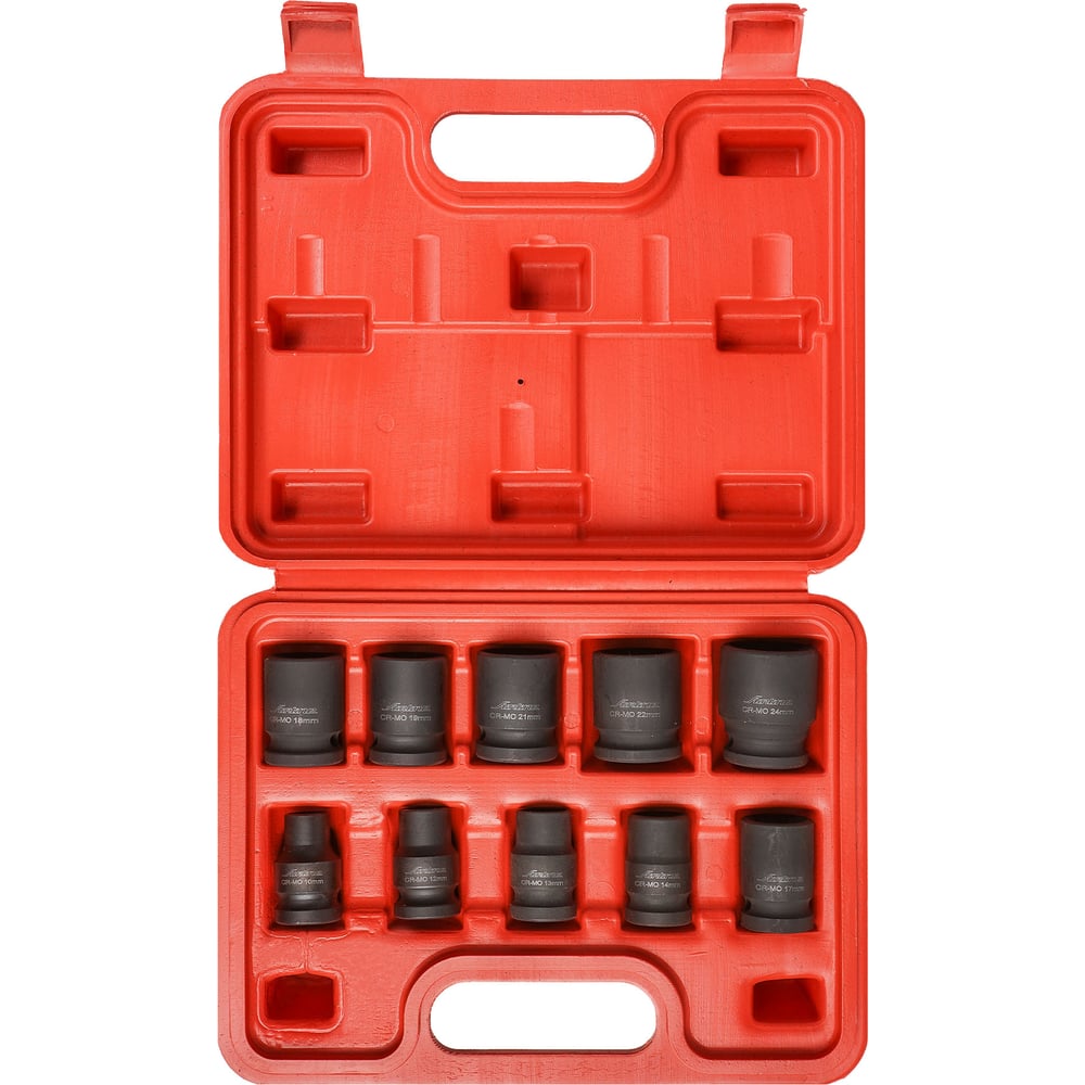 Набор головок ударн. 1/2" 38мм 10 пр. (10,12,13,14,17,18,19,21,22,24мм) пласт. кейс AIRLINE ATAS047 Материал - сталь 42CrMo Твердость - 45-49 HRC Покрытие - фосфатирование Предназначены для работы с пневматическим и ручным инструментом. Артикул: ATAS047 Состав: металл Размер: 10,12,13,14,17,18,19,21,22,24,мм Длина: 38мм Присоединительный квадрат: 1/2"