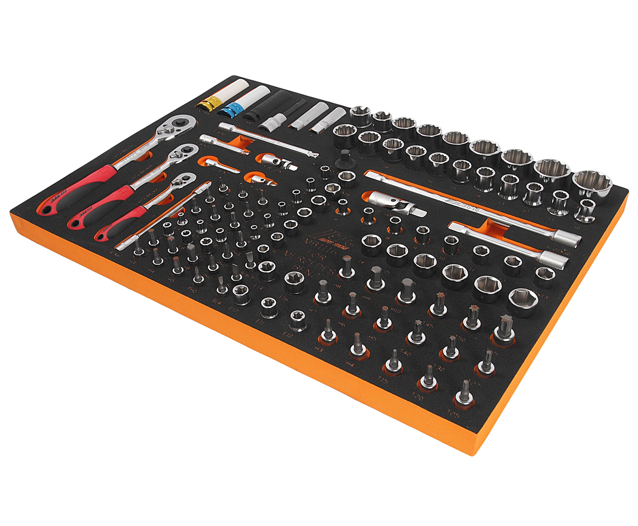 Универсальный набор инструмента, комплектация Mercedes Benz, в ложементе 116шт JTC-MB1116 - комплект инструментов, головок и вспомогательных приспособлений для легкого, быстрого и качественного обслуживания автомобилей. Изделия удобно располагаются в отдельных ячейках специального ложемента, который входит в комплект поставки. Набор такого типа широко распространен для оснащения персональных рабочих мест мастеров.