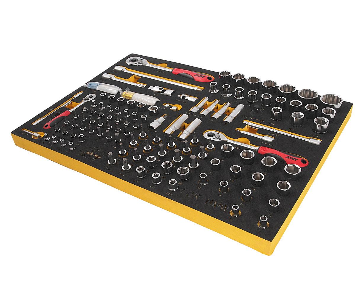 JTC-BW1119 — профессиональный набор инструментов из 119 предметов, предназначенный для выполнения широкого спектра слесарно-монтажных работ. Набор разработан для использования в автосервисах, производственных мастерских и профессиональных ремонтных работах. Набор полностью соответствует профессиональным стандартам качества и обеспечивает эффективное выполнение всех необходимых операций по обслуживанию автомобилей марки BMW. Инструменты подходят для ежедневного интенсивного использования в условиях автосервиса или производственной мастерской.