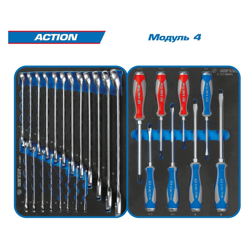 Набор инструментов KING TONY 934_327MRV «ACTION» (327 предметов) — профессиональный комплект в красной тележке для автосервисов и мастерских. Включает ключи, головки, насадки и принадлежности основных типоразмеров. Инструменты из хром_ванадиевой стали с антикоррозийным покрытием гарантируют долговечность. Тележка с выдвижными ящиками обеспечивает удобное хранение и мобильность. Оптимален для интенсивной ежедневной работы.