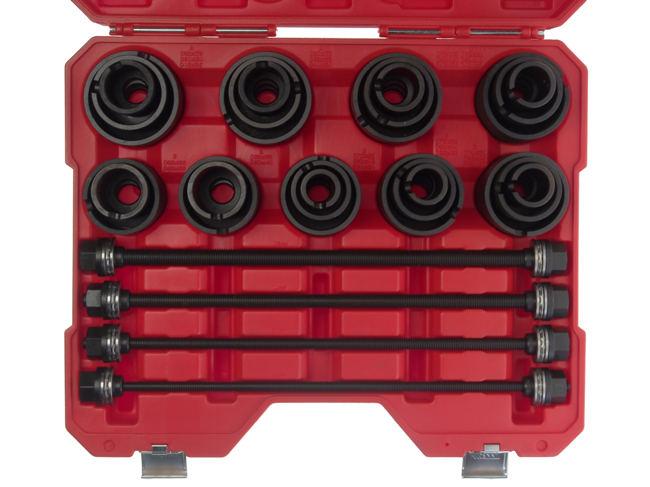 Универсальный набор используется для снятия и установки сайлентблоков и резиновых втулок.