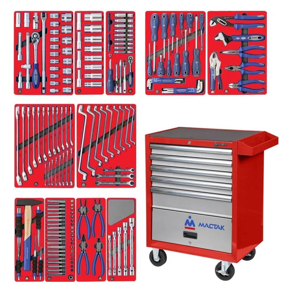 Набор инструментов "МАСТЕР" в красной тележке, 205 предметов МАСТАК 52-06205R