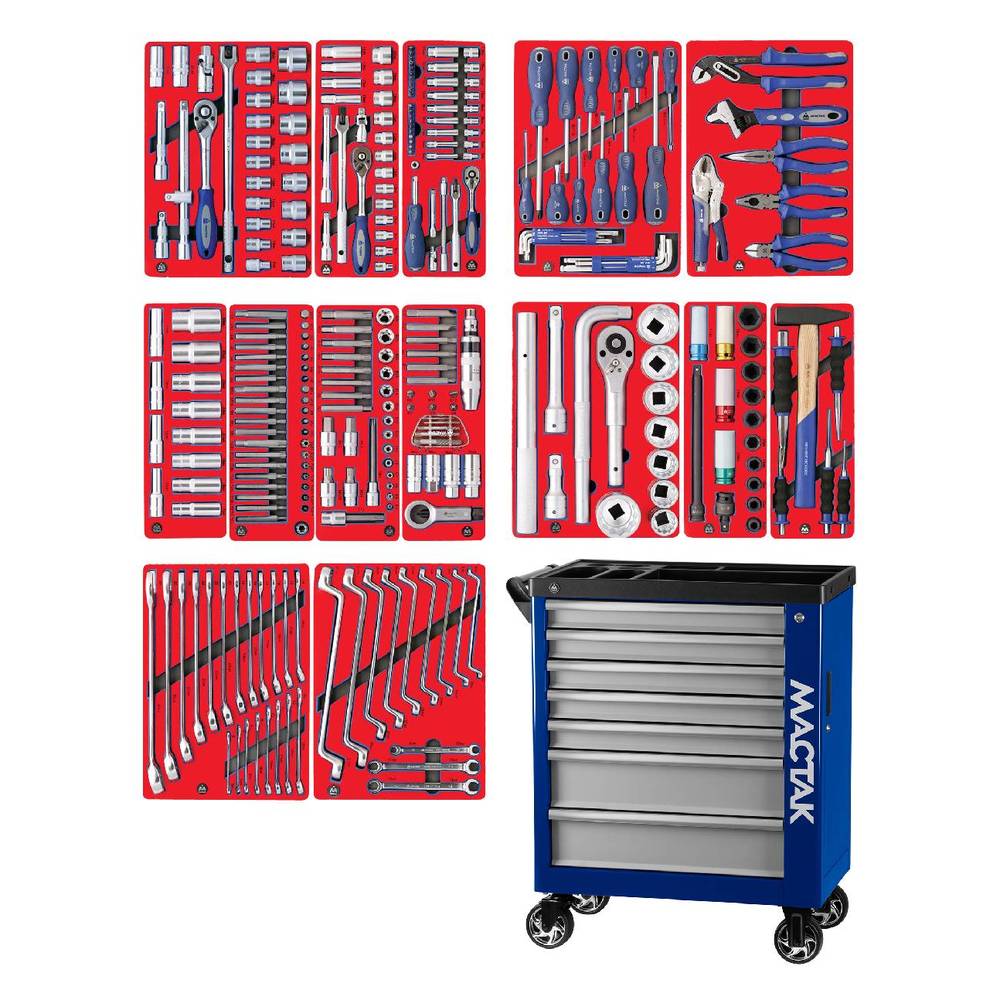 Набор инструментов "ПРОФИ" в синей тележке, 299 предметов МАСТАК 50-07299B