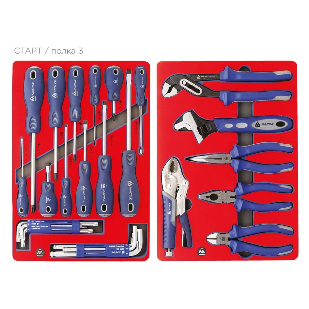 Набор инструментов "СТАРТ" в серой тележке, 161 предмет МАСТАК 52-05161G