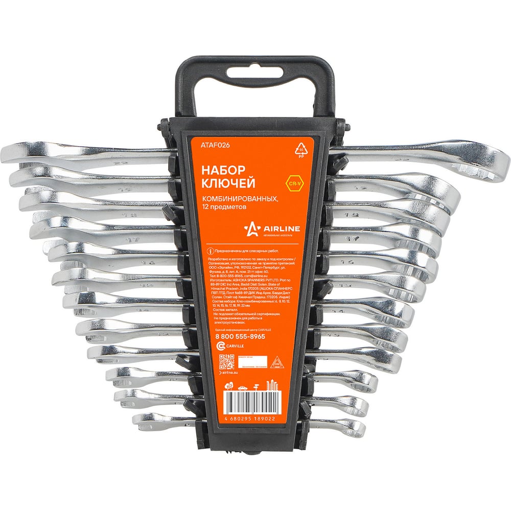 Набор комбинированных ключей Airline 12 предметов, пласт. держатель ATAF026 предназначен для работ с резьбовыми соединениями. Ключи изготовлены из высококачественной хромованадиевой стали. Тело ключа изготовлено методом горячей ковки, что придаёт ему высокую прочность и долговечность. Финишное хромированное покрытие защищает ключ от воздействия коррозии, делает его более износостойким и легко очищается от загрязнений. Продуманный профиль накидной части ключа смещает пятно контакта с ребра грани на её поверхность, что предотвращает повреждение болтов и гаек даже при самых высоких нагрузках. Эргономичный профиль рукоятки ключа позволяет развивать большее усилие без риска повреждения кистей рук.