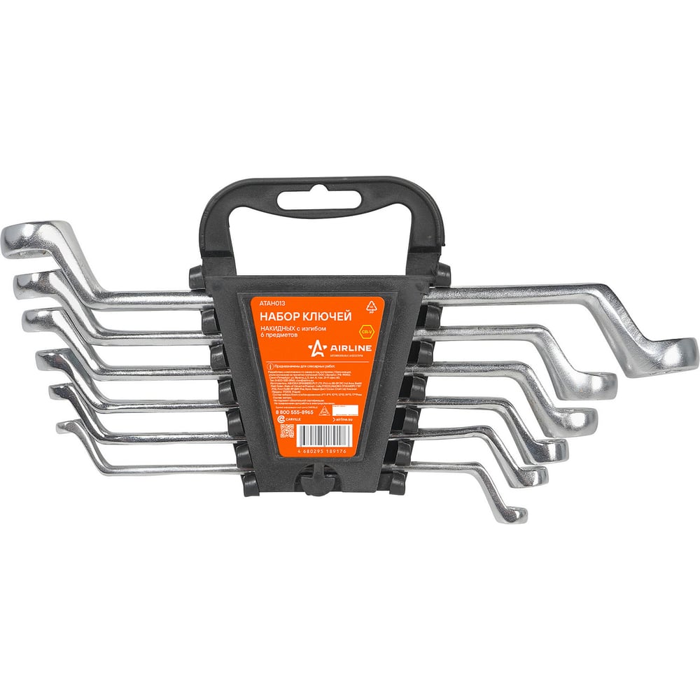 Набор накидных ключей Airline с изгибом, 6 предметов, пластиковый держатель ATAH013 предназначен для работ с резьбовыми соединениями. Ключи изготовлены из высококачественной хромованадиевой стали. Тело ключа изготовлено методом горячей ковки, что придаёт ему высокую прочность и долговечность. Финишное хромированное покрытие защищает ключ от воздействия коррозии, делает его более износостойким и легко очищается от загрязнений. Продуманный профиль накидной части ключа смещает пятно контакта с ребра грани на её поверхность, что предотвращает повреждение болтов и гаек даже при самых высоких нагрузках. Эргономичный профиль рукоятки ключа позволяет развивать большее усилие без риска повреждения кистей рук.