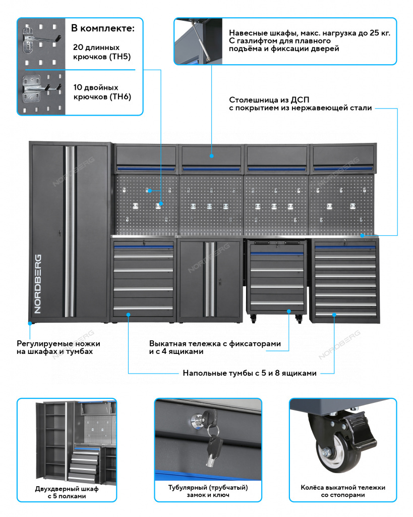 NORDBERG TT116 — универсальный модульный набор мебели для профессиональных автомастерских.