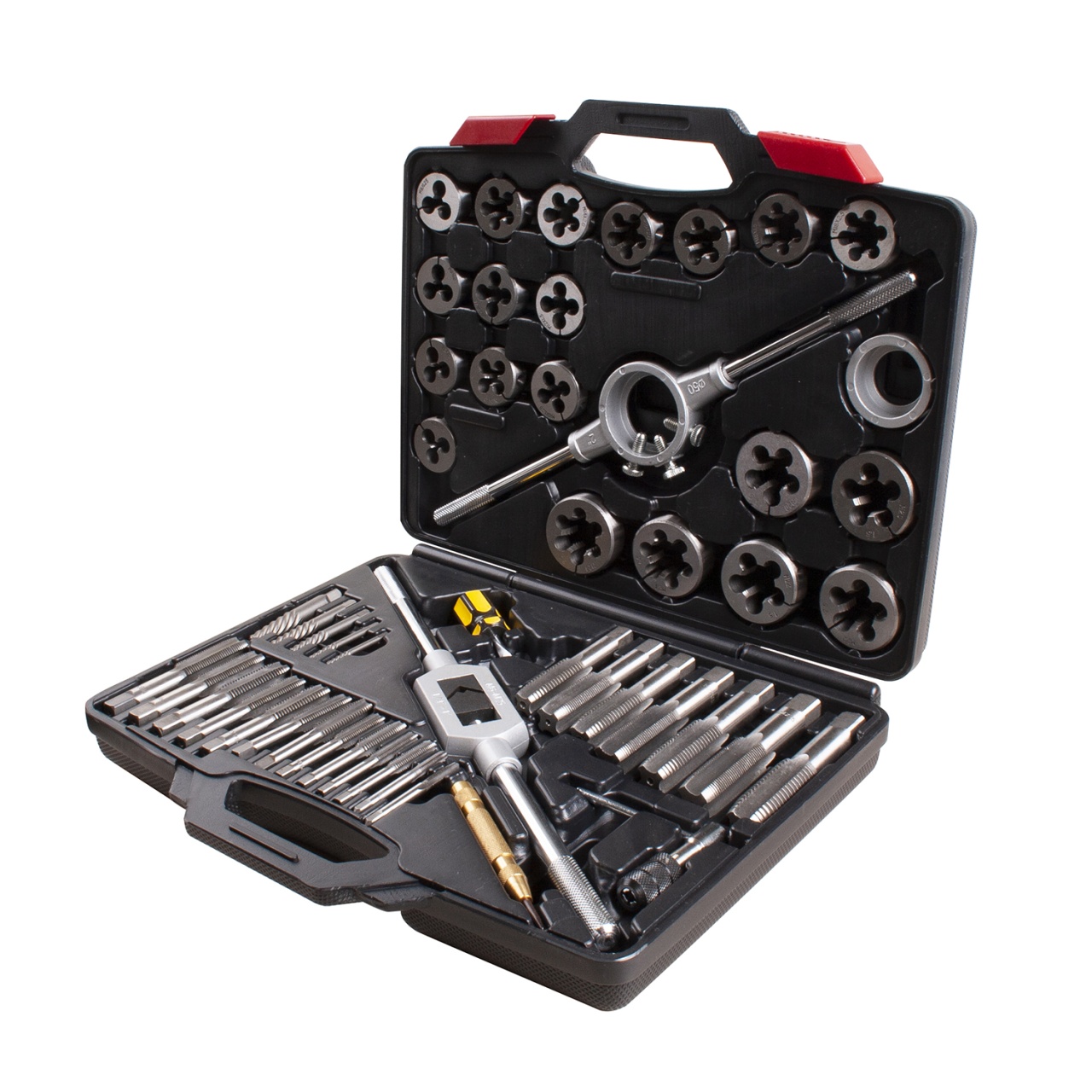 • Плашки - _ посадки 38 мм (1-1/2") - 14 шт: М6х0.75, М6х1.0, М8х1.0, M8х1.25, М10х1.25, M10х1.5, M12х1.25, M12х1.5, M14х1.5, M14х2.0, M16х1.5, M16х3.0, M18х1.5, M18х2.5