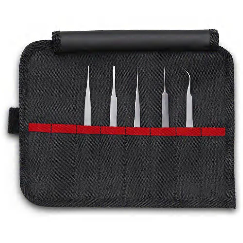 92 00 02 Набор прецизионных пинцетов Пять высококачественных наборов пинцетов: прецизионные пинцеты, универсальные пинцеты, антистатические, пластиковые и изолированные пинцеты. Оптимальная комбинация: наборы пинцетов представлены в различных комбинациях в высококачественной инструментальной сумке-скатке для безопасной транспортировки и хранения без повреждений. Две разные инструментальные сумки-скатки: (набор VDE с 5 отделениями; другие варианты с 7 отделениями). Комплект поставки: 1 x 92 21 03 KNIPEX пинцет захватный прецизионный, 1 x 92 31 01 KNIPEX пинцет захватный прецизионный, 1 x 92 21 02 KNIPEX пинцет захватный прецизионный, 1 x 92 21 01 KNIPEX пинцет захватный прецизионный, 1 x 92 51 01 KNIPEX пинцет захватный прецизионный