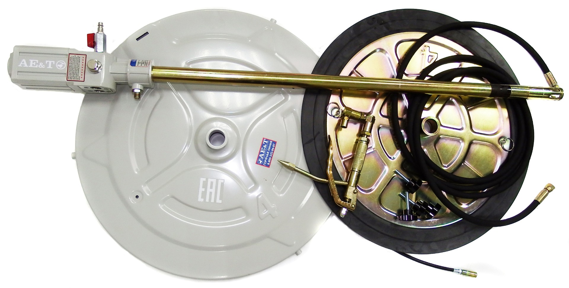 Устройство приводится в действие воздушным компрессором, что является надежным и экологически безопасным способом, не создает искр во время работы. Компрессор и тележка для перевозки бочки в комплект не входят.