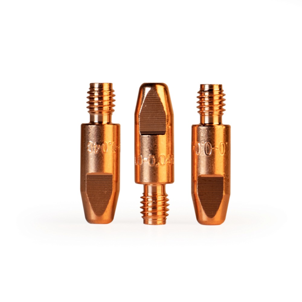 Наконечник – расходная часть MIG/MAG горелки, которая обеспечивает токосъём в процессе сварки, поэтому наконечники, так же называют контактными. Кроме того, через наконечник в процессе сварки подаётся проволока. Для оптимальной работы и идеального контакта необходимо, чтобы диаметр отверстия наконечника и сечение проволоки – совпадали.