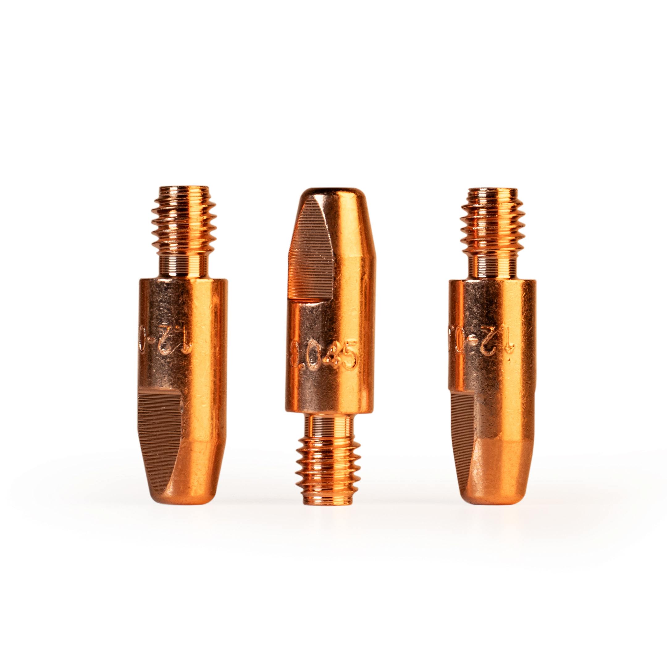 Наконечник – расходная часть MIG/MAG горелки, которая обеспечивает токосъём в процессе сварки, поэтому наконечники, так же называют контактными. Кроме того, через наконечник в процессе сварки подаётся проволока. Для оптимальной работы и идеального контакта необходимо, чтобы диаметр отверстия наконечника и сечение проволоки – совпадали.