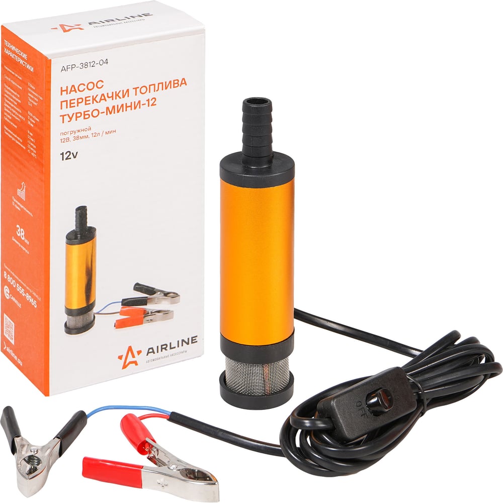 Насос перекачки топлива погружной 12В, 38мм, 12л/мин, внешний фильтр AIRLINE AFP-3812-04 Насос погружной AIRLINE AFP-3812-04 12В диаметром 38мм предназначен для перекачки дизельного топлива из бочки, цистерны или любой другой емкости с достаточно узким горлышком. Погружной насос комплектуется выключателем, расположенным на проводе, зажимами типа «крокодил» и металлическим хомутом для обжима шланга. Насос имеет внешний фильтр грубой очистки из нержавеющей стали, благодаря нему в топливный бак автомобиля точно не попадут частицы мусора. Внешний фильтр легко отчищается от мусора и это позволяет продлить срок службы насоса. Эксплуатация допускается в широком температурном диапазоне окружающей среды от 5 до 35 градусов. Чтобы начать работу, достаточно присоединить топливный шланг и аккумулятор. Насос оснащен внешним фильтром. Это обеспечивает легкую чистку от различного мусора и продлит срок службы изделия. Насос категорически нельзя использовать для перекачки легковоспламеняющихся или агрессивных жидкостей с высокой степенью летучести паров (бензин, растворители, горючие спирты). Артикул: AFP-3812-04 Состав: металл, пластик Напряжение питания, В: 12 Производительность, л/мин: 12 Диаметр, мм: 38 Длина кабеля питания, см: 300 Тип перекачиваемой жидкости: дизельное топливо, керосин, антифриз Диаметр патрубка, мм: 16 Мощность, Вт: 20 Тип насоса: погру...