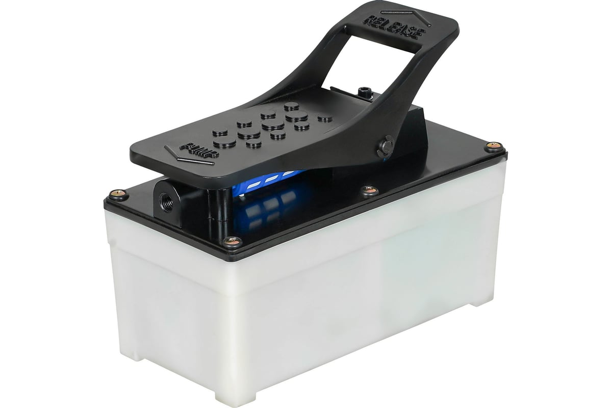 универсальным инструментом, который производит давление для различного гидравлического оборудования. Насос выполнен из высокопрочной стали и снабжен предохранительным клапаном, который предотвращает перегрузы. Объём рабочей жидкости составляет 1.7л. Длинна рукава высокого давления составляет 1.5 м и имеет диаметр 15 мм. В комплекте также идет быстроразъемное соединение с резьбой 3/8. Насос применим для работ с гидравлическими цилиндрами прямого и обратного действия в гидравлических гаражных прессах и кранах, стяжках пружин подвески автомобилей, наборах гидравлических растяжек для кузовного ремонта. Давление масла 700бар Скорость потока масла на выходе из насоса (без нагрузки): 0.4л/мин Скорость потока масла на выходе из насоса (под нагрузкой): 0.18л/мин