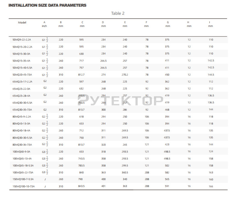 7. Класс изоляции двигателя — F, а проектная выходная мощность имеет достаточный запас, и вся серия электронасосов может работать при полном напоре.