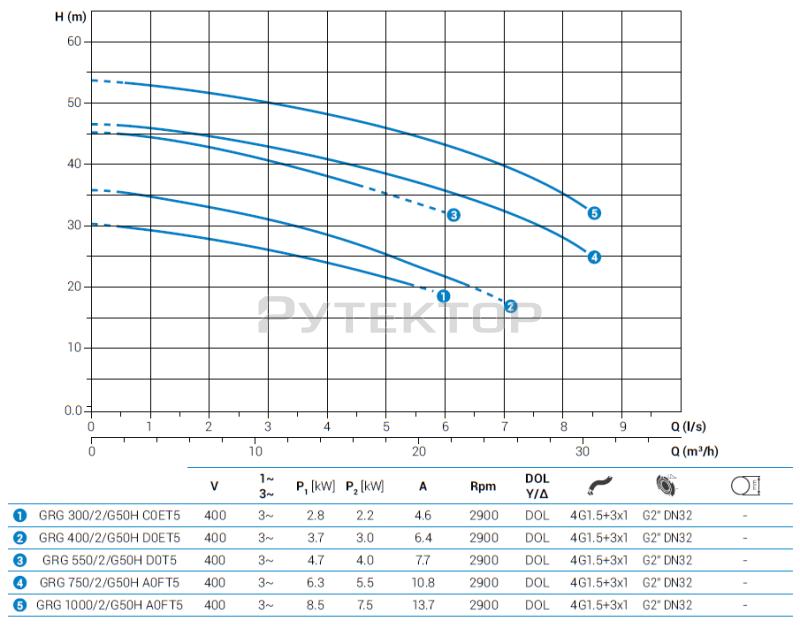 Насосные агрегаты типа GRG - погружные с открытым многолопастным рабочим колесом и блоком измельчения на всасывании и горизонтальным подающим патрубком. Проточная часть насоса и рабочее колесо выполнены из чугуна.