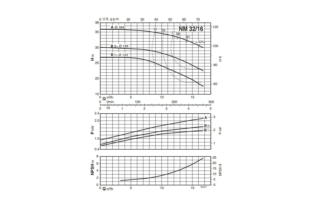 Корпус Calpeda NM 32/16B/A 100517513 и соединительная часть изготовлены из чугуна;
