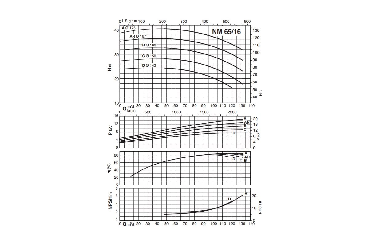 Корпус Calpeda NM 65/16A/B 100500833 и соединительная часть изготовлены из чугуна;