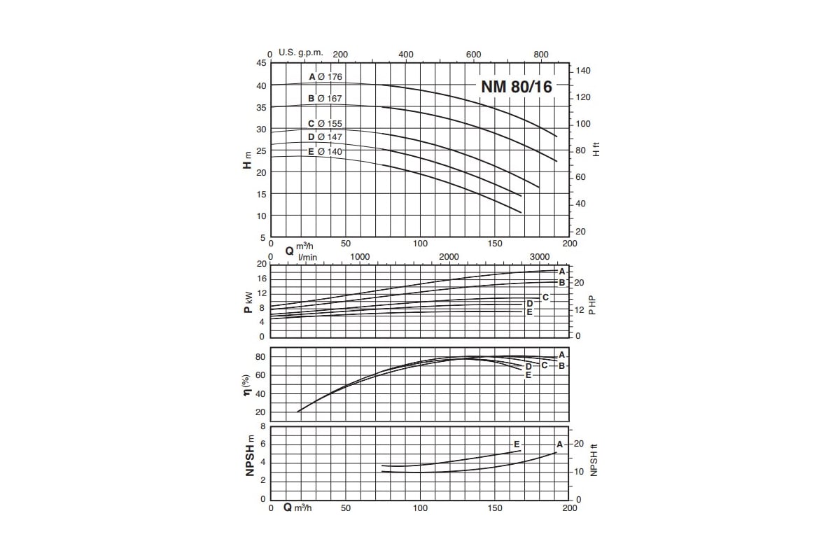 Корпус Calpeda NM 80/16B/B 100500836 и соединительная часть изготовлены из чугуна;