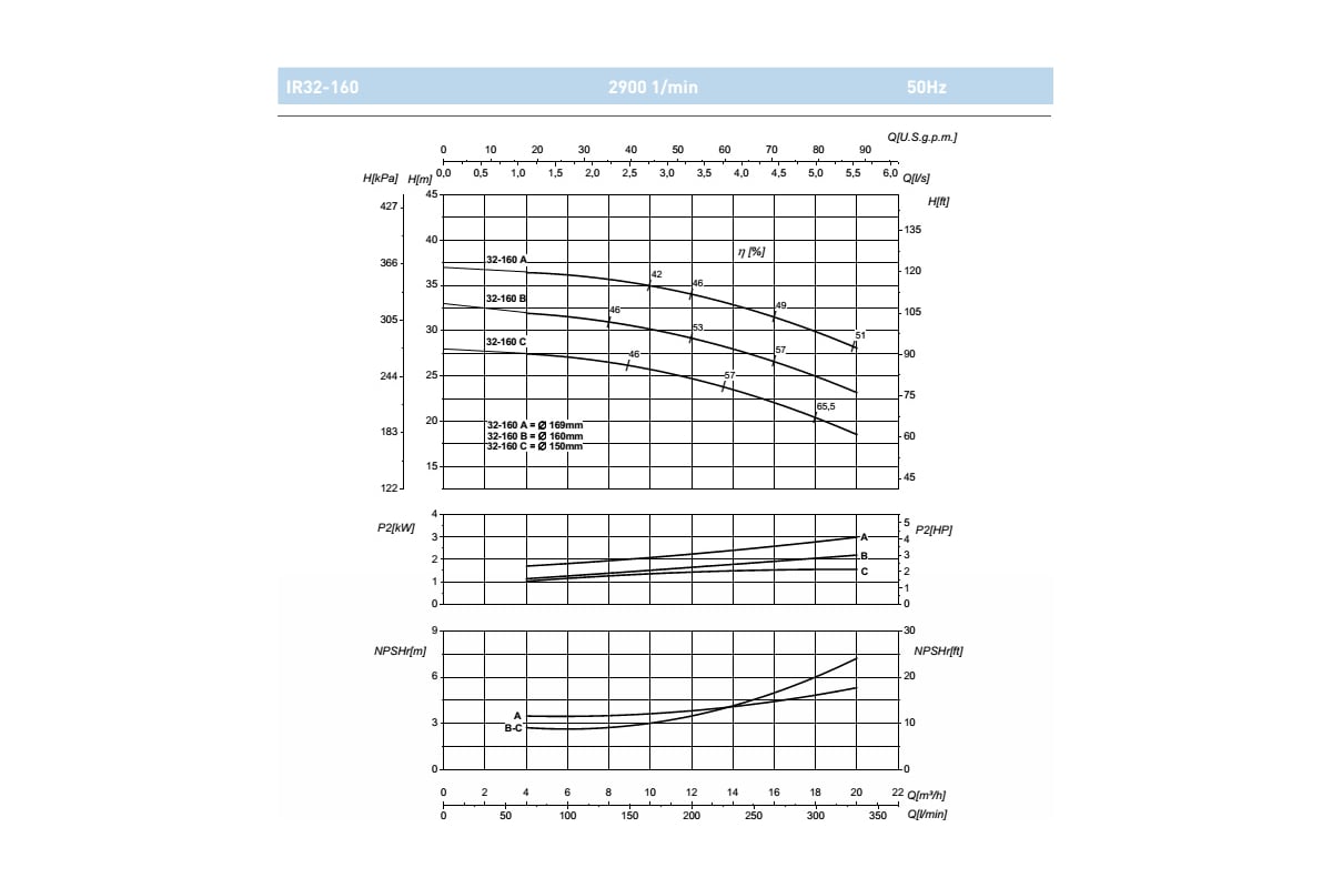 SAER IR 32-160NB 100543928 пригоден для перекачивания слегка загрязненной жидкости, химически нейтральной по отношению к материалам насоса, без твердых и длинноволокнистых включений