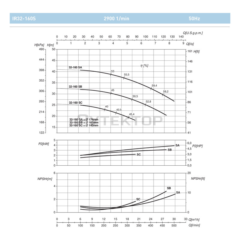 Параметры насоса с двигателем ~ 2900 об / мин.