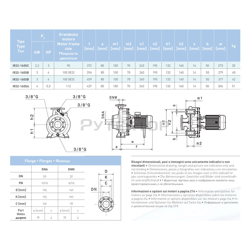Насосный агрегат моноблочный фланцевый SAER IR 32-160SB