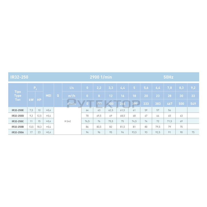 Параметры насоса с двигателем ~ 2900 об / мин.