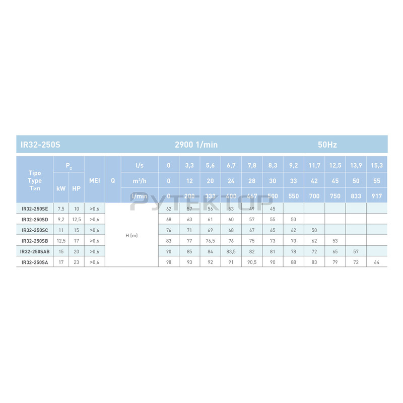 - Параметры насоса с двигателем ~ 2900 об / мин.