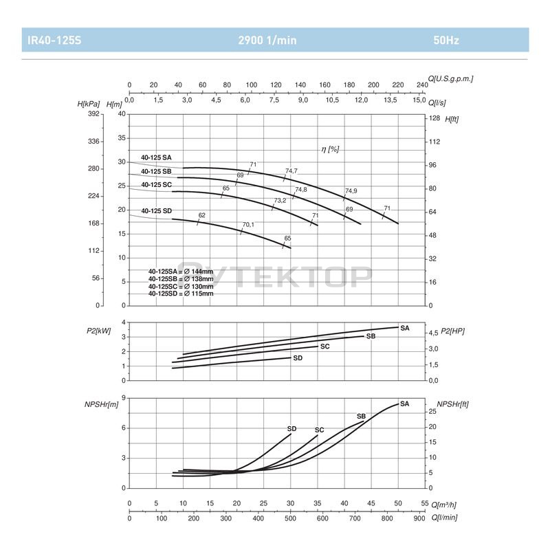Параметры насоса с двигателем ~ 2900 об / мин.