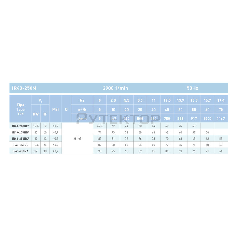 Параметры насоса с двигателем ~ 2900 об / мин.