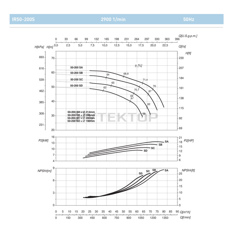 Параметры насоса с двигателем ~ 2900 об / мин.