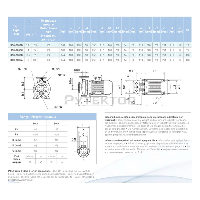 Параметры насоса с двигателем ~ 1450 об / мин.