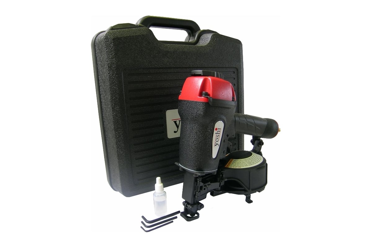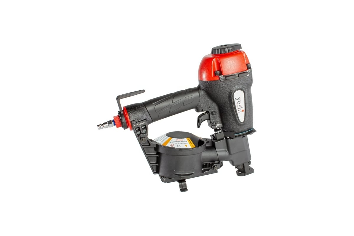 Yoshi CRN45 профессиональный гвоздезабивной пистолет, предназначенный для монтажа мягкой кровли и изоляционных материалов. Инструмент работает с барабанными кровельными гвоздями CRN длиной от 19 до 45 мм и диаметром шляпки 10 мм, обеспечивая надёжное крепление без повреждения фиксируемых поверхностей. Эргономичная конструкция и небольшой вес делают пистолет удобным в эксплуатации, а оптимизированная система подачи гвоздей гарантирует стабильную производительность при интенсивной работе.