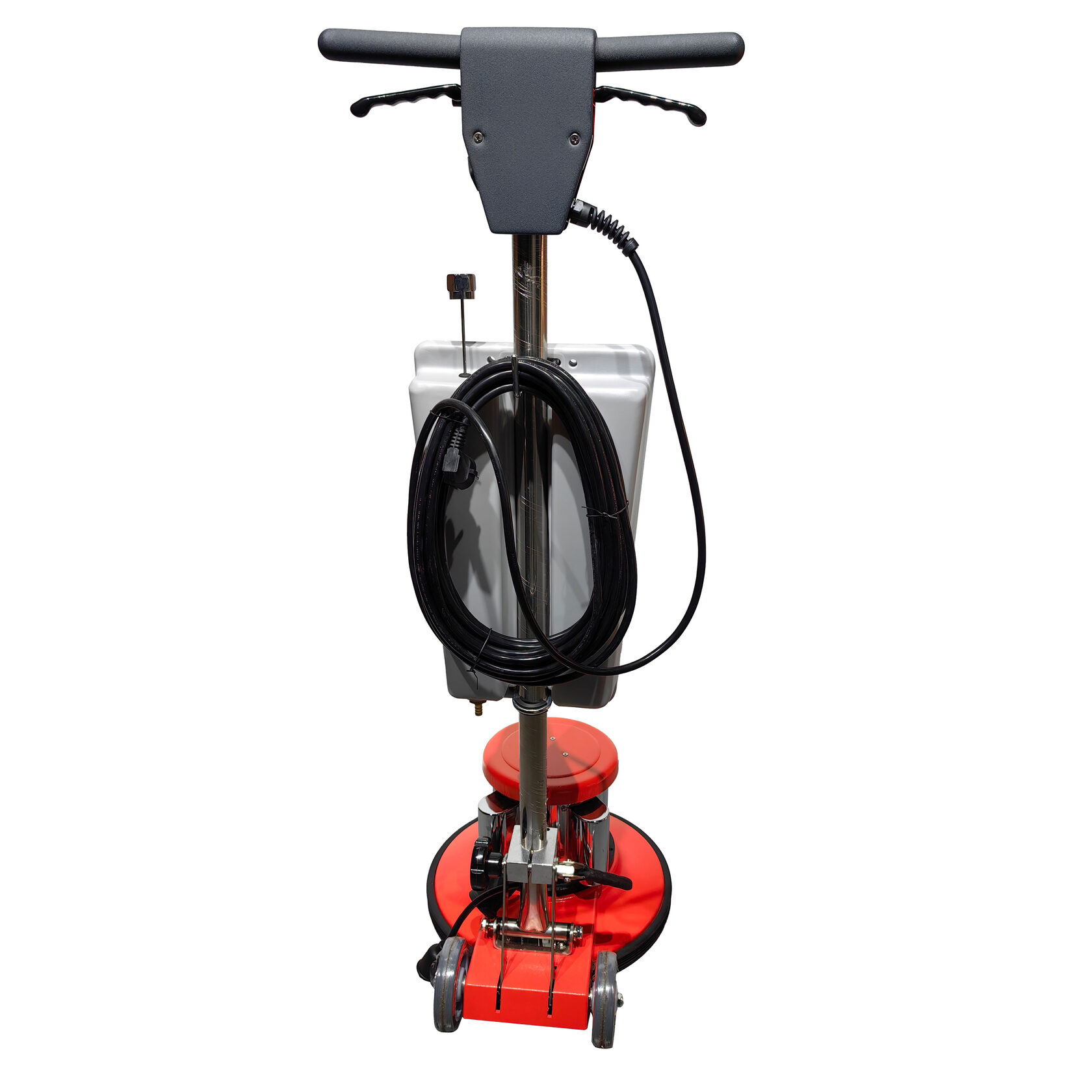 В базовой комплектации машина оснащена полным комплектом для начала работы: пэдодержателем, щеткой средней жесткости, ковровой щеткой и баком для моющего раствора (12л).