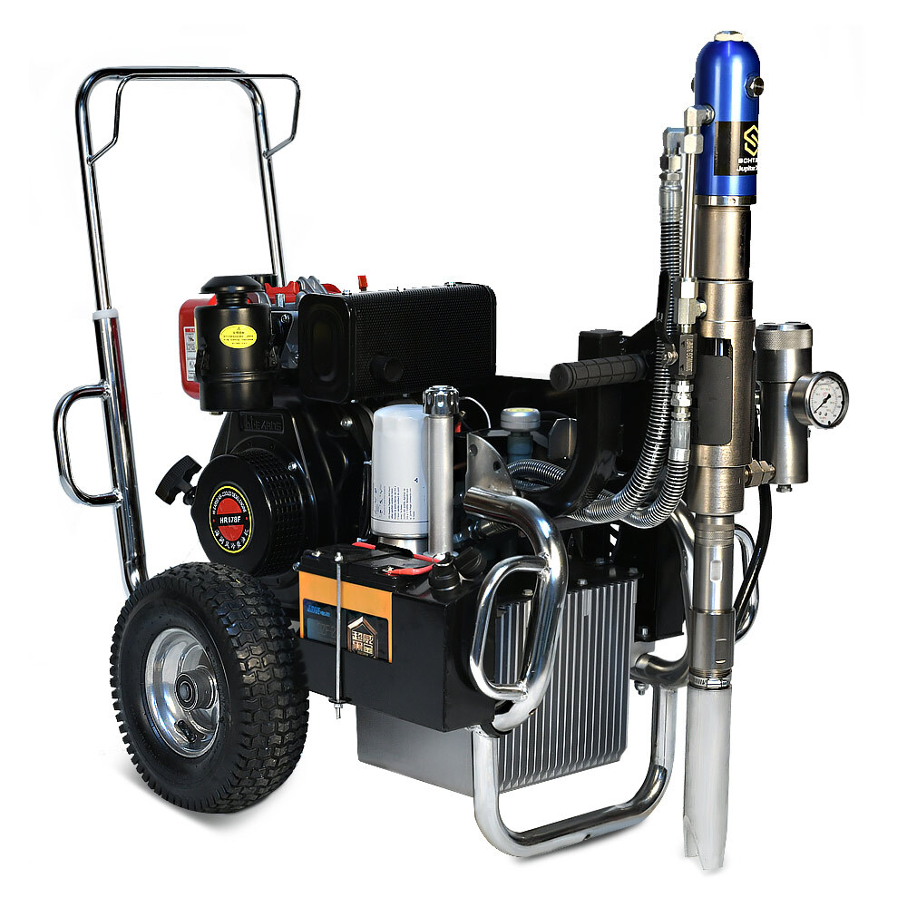 • работа на дизеле: позволяет выполнять окраску в условиях отсутствия электросетей;