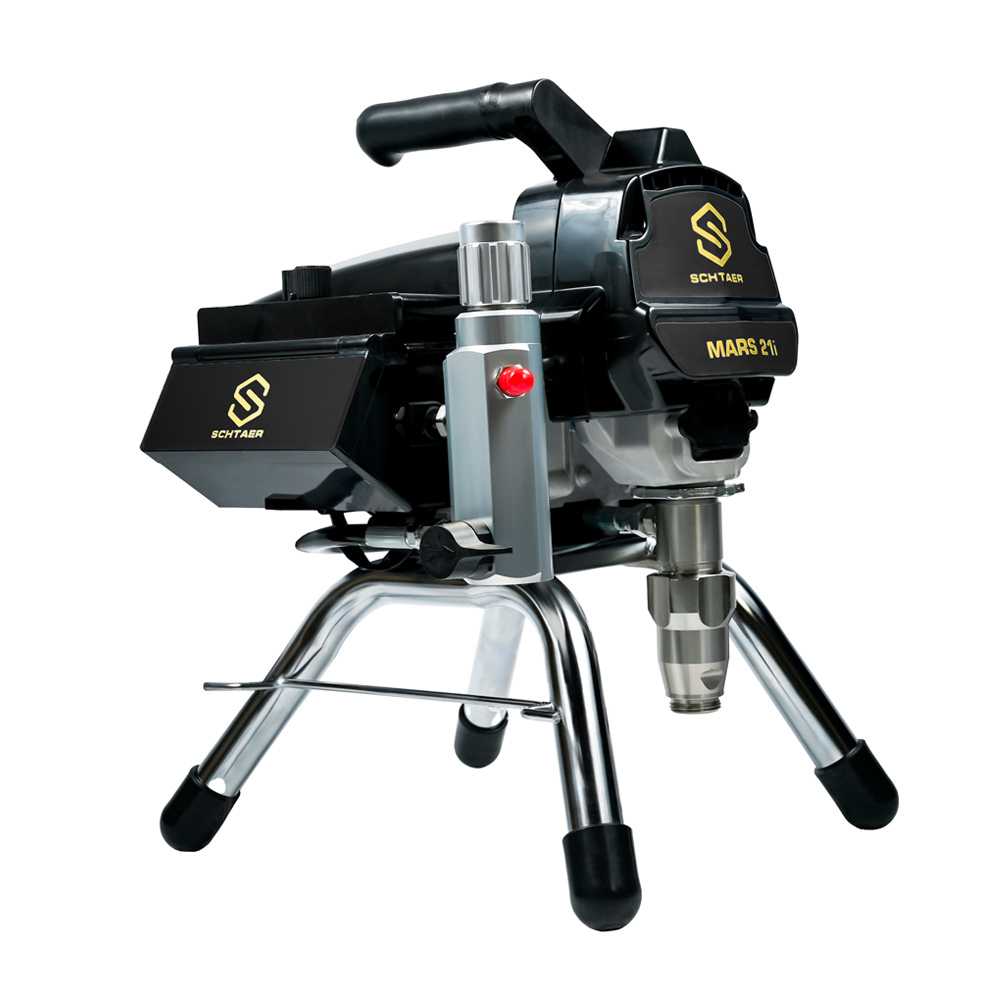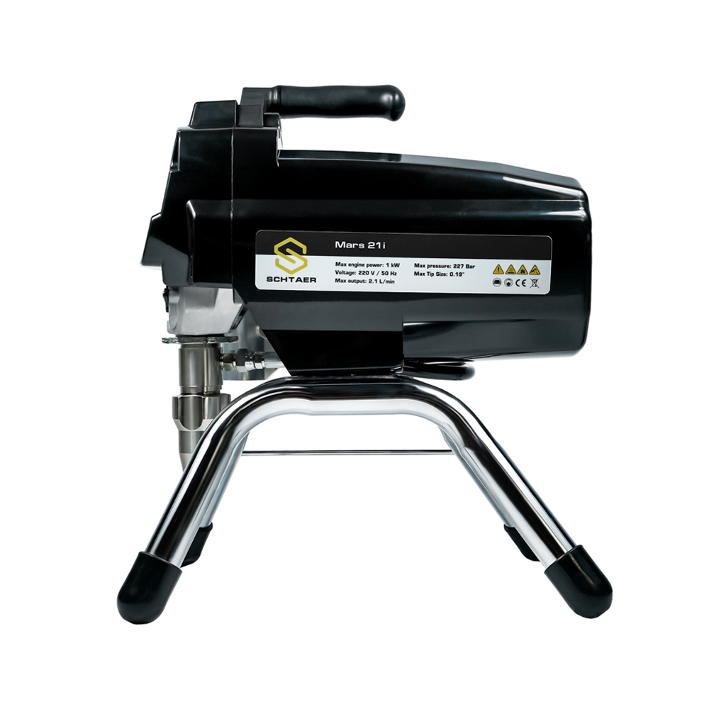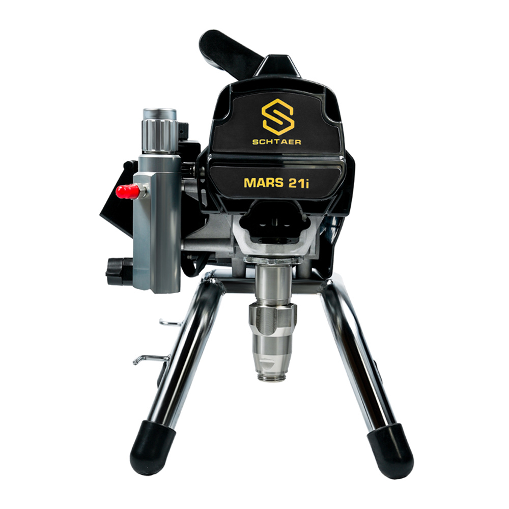 Schtaer Mars 21i - аппарат безвоздушного распыления интерьерных и фасадных ЛКМ. Он работает от электрической сети 220 вольт. Краска поступает в окрасочный аппарат через шланг-заборник, поршневой насос нагнетает давление и подает краску по шлангу на краскопульт. Факел формируется на специальной форсунке с тонким сечением.