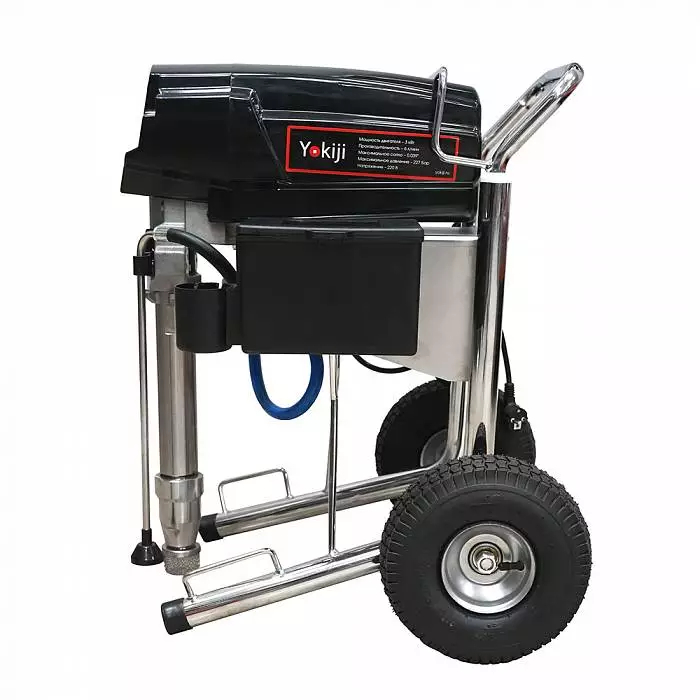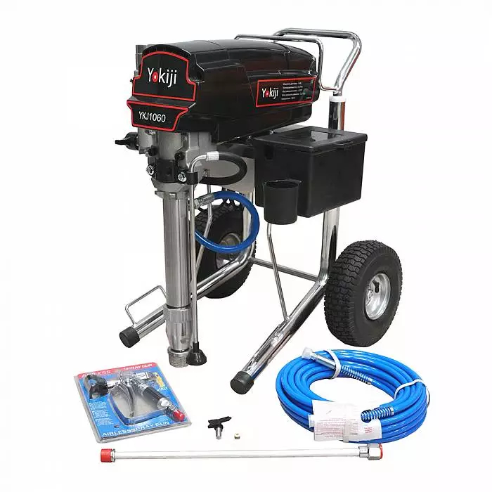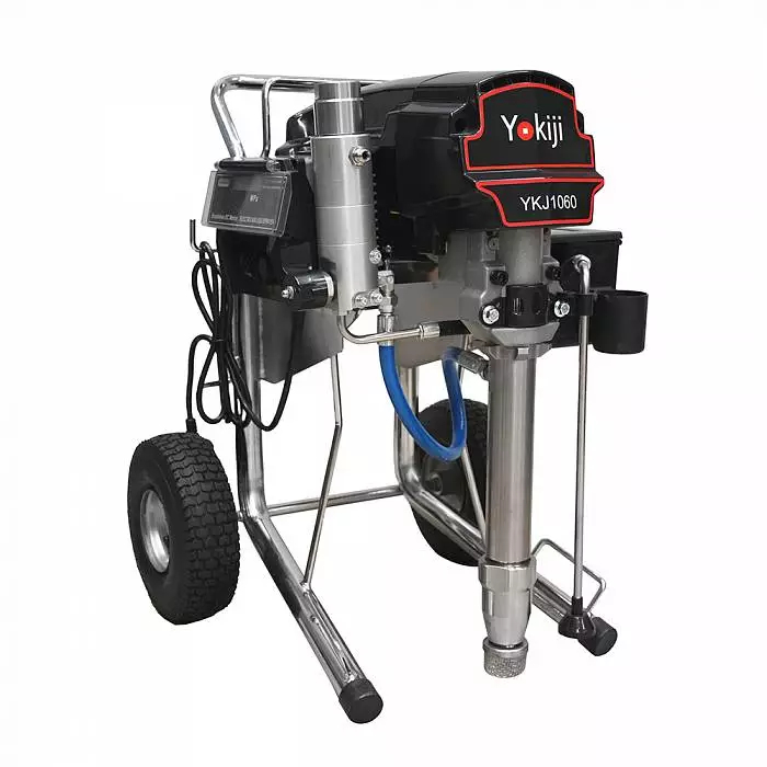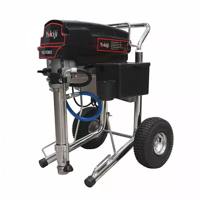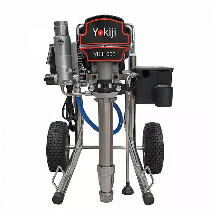 YOKIJI YKJ 1060 – окрасочный аппарат для распыления материалов низкой, средней и высокой вязкости. Аппарат имеет высокую скоростью подачи материала - производительность до 6 л/мин., при этом более компактный размер и меньший вес по сравнению с аналогичными агрегатами. Мощность 3 кВт и поддерживаемое давление 227 Бар обеспечивают высокое качество покрытия при нанесении интерьерных красок, вязких эмалей, огнезащитных покрытий, грунтов. Работает от розетки 220 В.