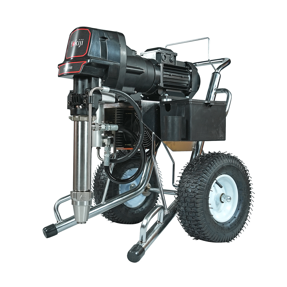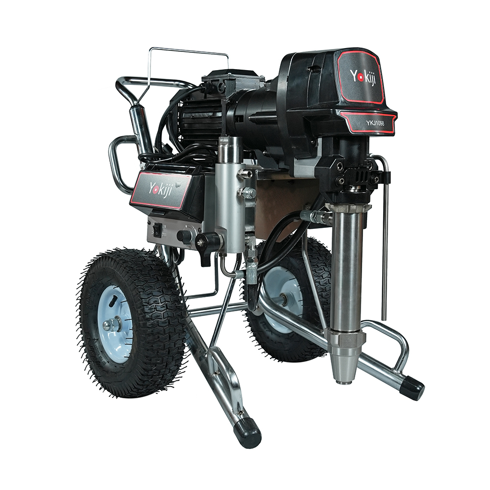 YOKIJI YKJ 1098 представляет собой окрасочный аппарат для вязких материалов. Это поршневая машина для безвоздушной окраски, способная работать с лакокрасочными материалами средней и высокой вязкости. Применяется во время нанесения ЛКМ на металлоконструкции. Подходит для нанесения финишных готовых распыляемых шпатлевок, эмалей и грунтовок, для антикоррозионных красок по металлу. А также для работы с акриловыми и латексными красками для стен, фасадов и потолков, красок по дереву и другими вязкими лакокрасочными материалами. Отличается высокой скоростью распыления (8,5 л/мин) и большой мощностью. Работает от электрической сети с напряжением 220 В.