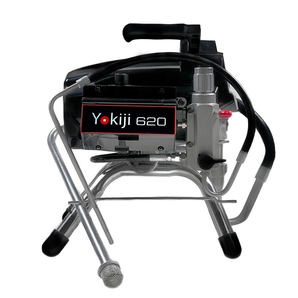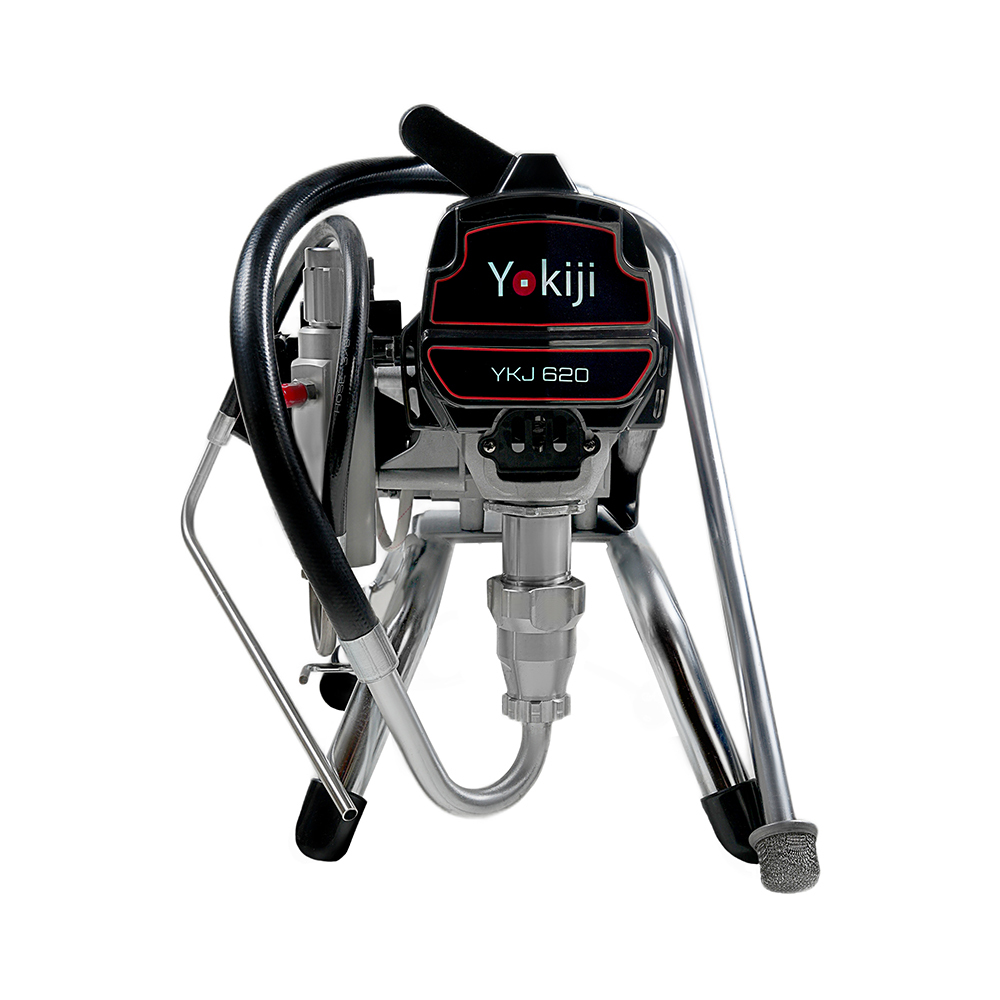 YOKIJI YKJ 620 - окрасочный аппарат для внутренней покраски стен и потолков. Окрасочный аппарат безвоздушного распыления краски предназначен для строительной покраски, внутри и снаружи, также окрасочный аппарат можно использовать для покраски деревянных и металлических конструкций красками средней вязкости. Окрасочный аппарат работает от стандартной электрической сети, забирает краску из ведра и подает ее с помощью поршневого насоса на краскопульт для безвоздушного распыления.