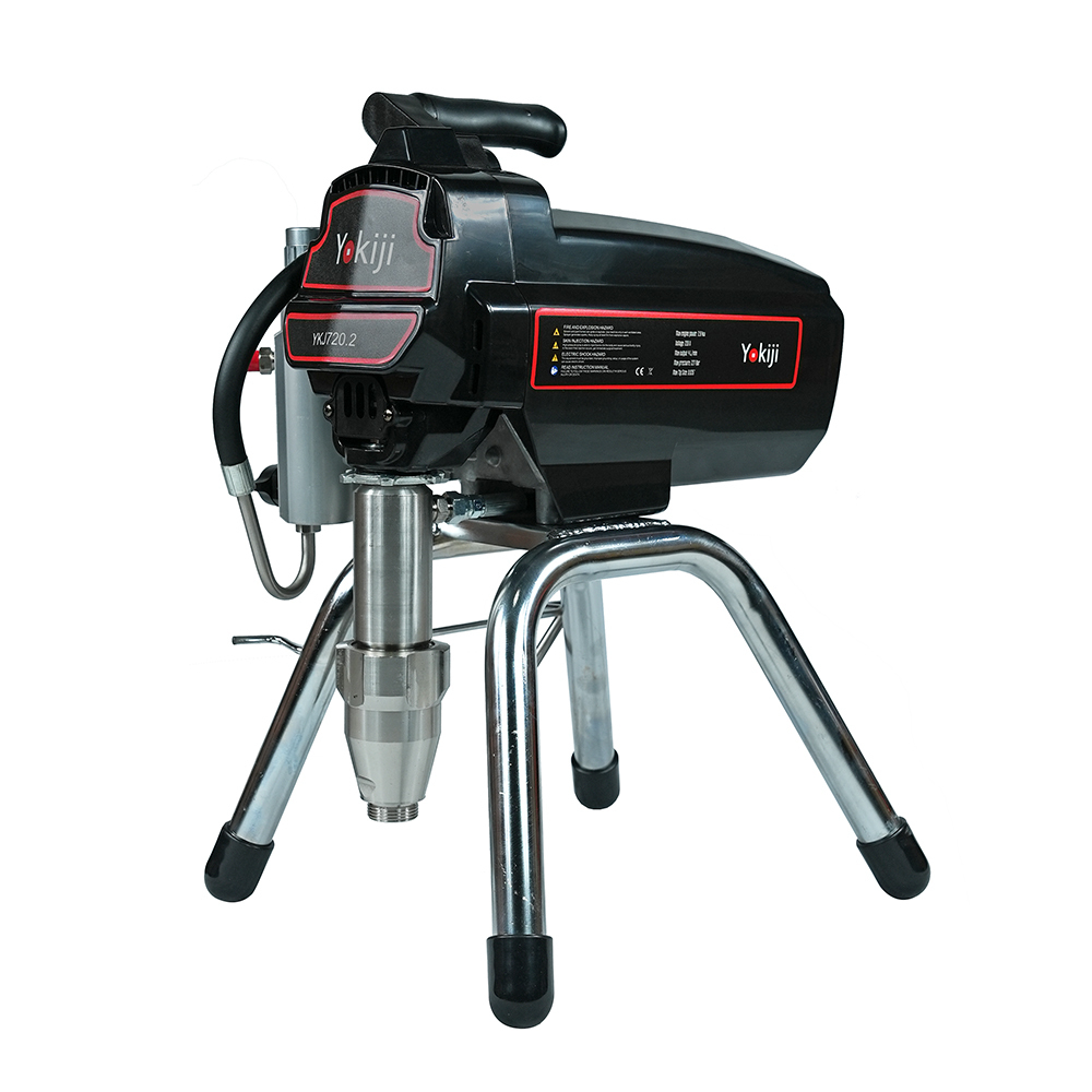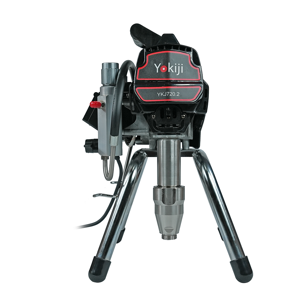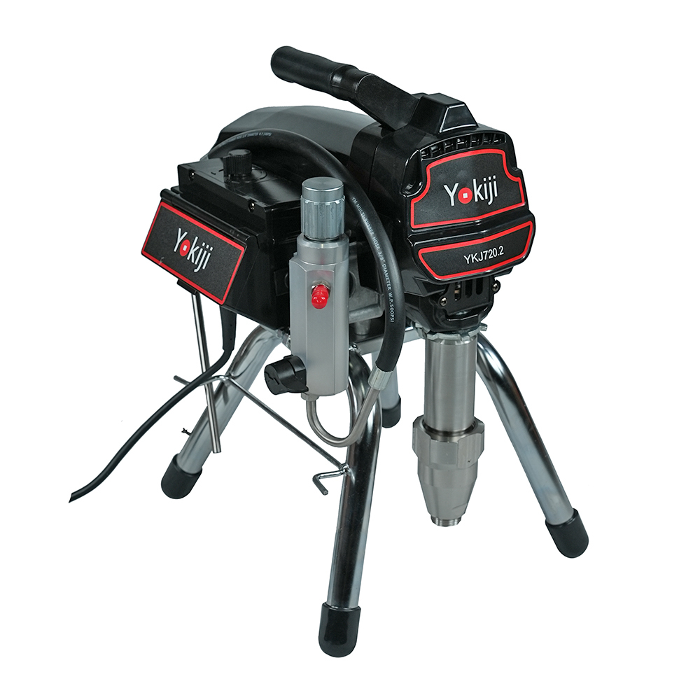 YOKIJI YKJ 720.2 – компактный легкий поршневой окрасочный аппарат с фильтром материала, электронной регулировкой давления и бесщеточным мотором. Ориентирован на выполнение интерьерных отделочных работ: нанесения грунтов, красок, эмалей на стены, потолки; также может применяться при окраске фасадов зданий, металлических и деревянных конструкций. Аппарат работает по принципу безвоздушного распыления под высоким давлением: материал подается от окрасочного агрегата через краскопульт, оснащенный соплом в соответствии с распыляемым материалом.