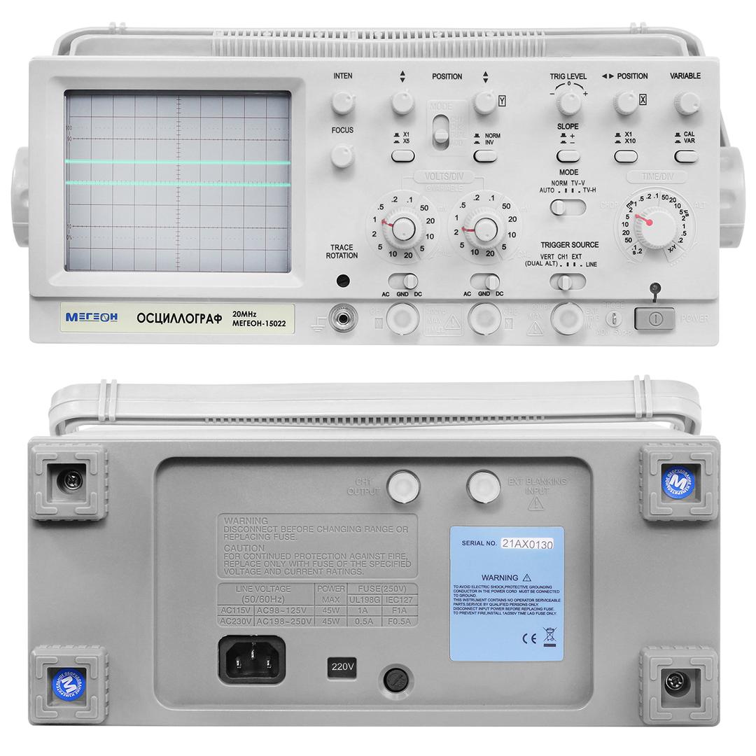 МЕГЕОН 15022 это универсальный сервисный двухканальный осциллограф. Полоса пропускания осциллографа 20 МГц, максимальная чувствительность 5 мВ/дел, возможно до 1 мВ/дел на одном канале. Минимальный коэффициент развёртки 0,2 мкс/дел. Возможно установление времени развертки 20 нс/дел при растяжке в 10 раз. Осциллограф имеет 6-дюймовую (12,5 см) прямоугольную электронно-лучевую трубку с внутренней шкалой. Осциллограф предназначен для использования в ремонтных мастерских, при разработке и наладке радиоэлектронной аппаратуры. Осциллограф прост в управлении и имеет высокую эксплуатационную надежность. Отвечает основным требованиям для обучения, несложного ремонта бытовой и электронной техники, ремонта электрооборудования автомобилей и других применений. Прибор по достоинству оценят профессионалы и радиолюбители.