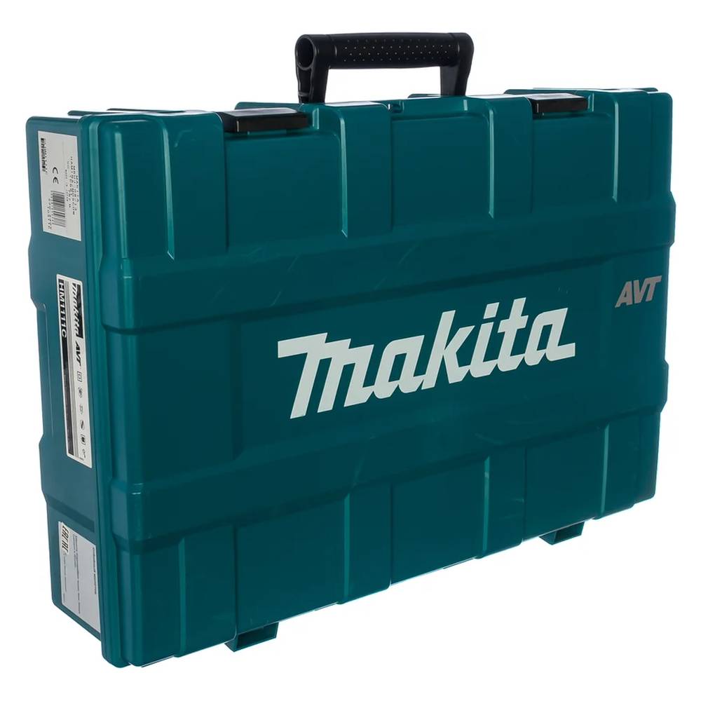 Отбойный молоток Makita HM1111C - высокопроизводительный ударный перфоратор с эффективной системой гашения вибрации AVT, создан для выполнения сложных рабочих задач и интенсивной нагрузки. Оснащен единственным режимом долбление. Модель с мощным двигателем потребляющим до 1300 Вт. Интенсивность долбления от 1100 до 2660 уд/мин. Сила удара составляет 17,2 Дж. Оснастка удерживается патроном SDS max. Агрегат с индикацией состояния угольных щеток. Есть функция плавного пуска, которая обеспечивает постепенный набор оборотов, предохраняет от рывков оснастки в начале рабочего процесса, а также защищает электросеть и механизмы перфоратора. Вес инструмента 8 кг. Длина сетевого шнура 5 м. Частоту вращения можно регулировать. Есть боковая рукоять для удобного и крепкого удержания при длительных нагрузках. Долото можно устанавливать в любом из двенадцати положений. Инструмент поставляется в кейсе для хранения и транспортировки.